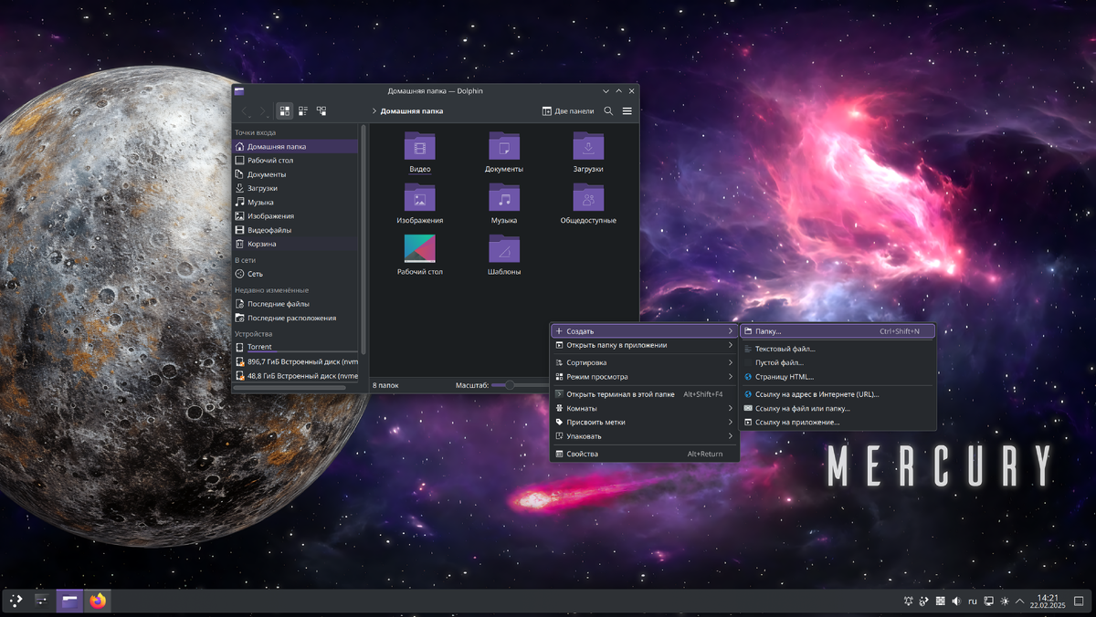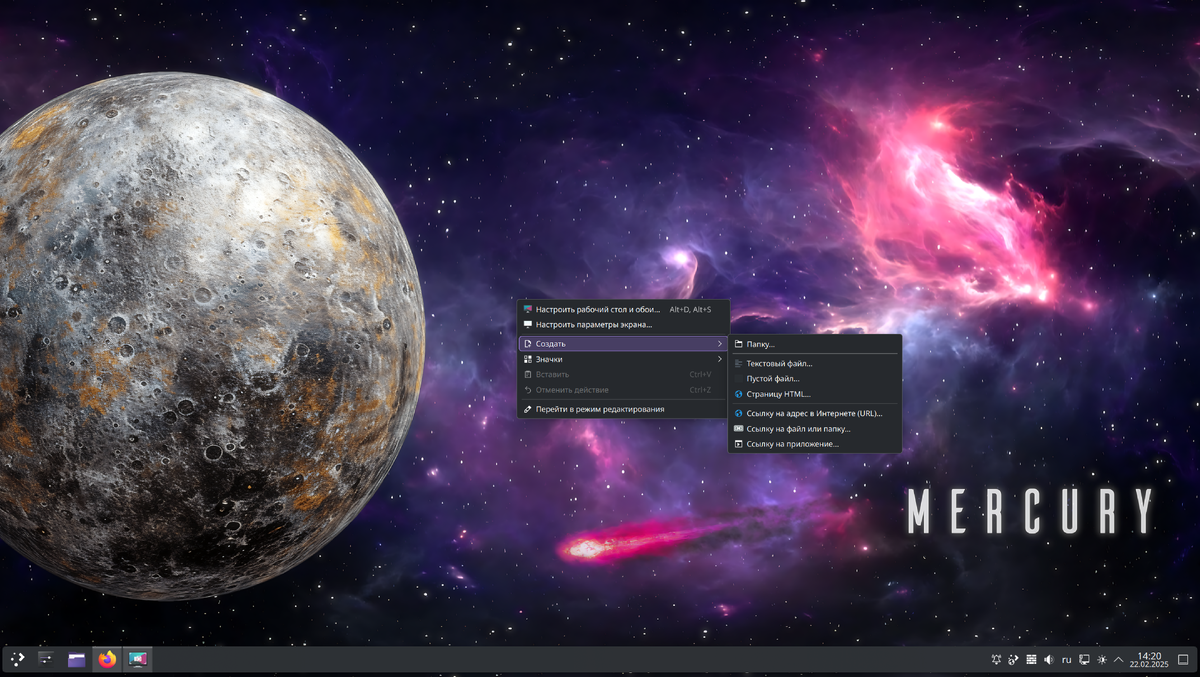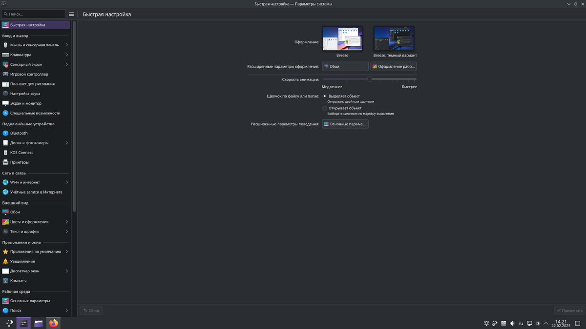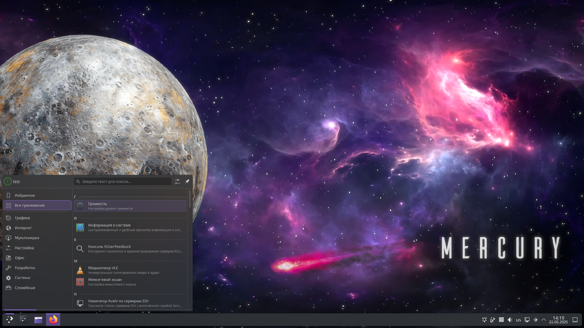 - Удобный рабочий стол(KDE). Можно установить любой другой рабочий стол.